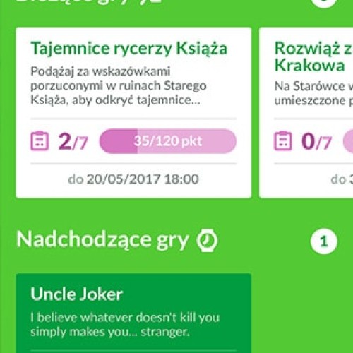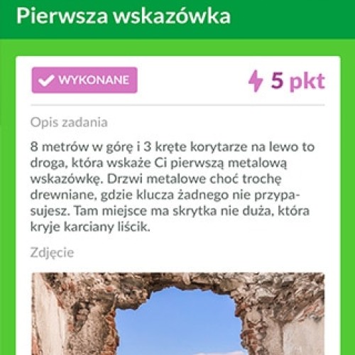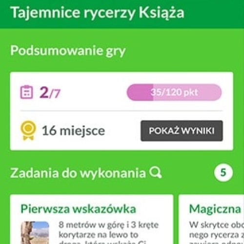 Aplikacja prowadzi grę – wskazuje punkty, aktywuje zadania, mierzy czas